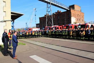 Normalerweise üben die Fachdienste Katastrophenschutz des Landkreises Anhalt-Bitterfeld zweimal im Jahr das Miteinander bei der Bekämpfung von Gefahrensituationen. Corona hat das in den letzten beiden Jahren verhindert. Doch nun war es wieder soweit. Vor kurzem trafen sich rund 250 Eisatzkräfte mit rund 60 Einsatzfahrzeugen zum gemeinsamen Ausbildungstag auf dem Gelände des Hafens Aken.
