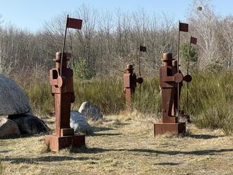 Die „Wächter der Goitzsche“ stehen noch - doch Informationen zum Kunstwerk gibt es nicht.