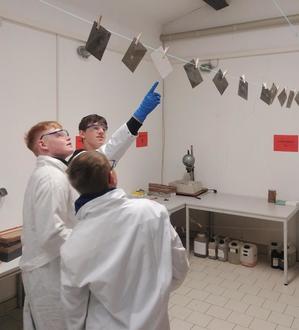 Im Industrie- und Filmmuseum in Wolfen wurden mit Schuhkartons Fotos gemacht. Es galt zu klären, welche Größe für das Loch im Karton für den Lichteinfall richtig ist, welcher Abstand zum fotografierenden Objekt optimal und welche Belichtungszeit für ein Negativ-Foto von bester Qualität notwendig ist. Aus dem besten Resultat wurde mit einem Negativbelichter dann noch ein Positiv (Bild) entwickelt.