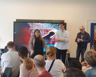 Judith Paletta und Martin Naundorf hießen die Besucherinnen und Besucher zur Eröffnungsfeier des neuen Festivalbüros herzlich willkommen.