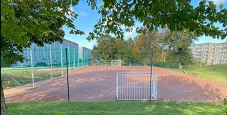 Nach dem Straßenbau in der Dr.-Wilhelm-Külz-Straße 62-90 (ehem. Dudelstraße) und den Arbeiten im Goldbachpark wurde die Baustelleneinrichtung beräumt. Bedienstete des städtischen Bauhofes sogten für das 4 m hohe Ballfangnetz zur Straße hin und die sandgeschlämmte Decke als Belag. Im Ergebnis haben wir dort jetzt einen erneuerten Bolzplatz für die Öffentlichkeit, Sport frei!