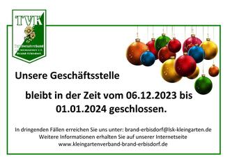 Wir wünschen allen Geschäftspartnern und Gartenfreunden ein frohes Weihnachtsfest und ein glückliches erfolgreiches neues Jahr.