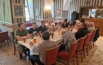 Im Anschluss trafen sich Stadträtinnen und Stadträte und deren Begleitung sowie Verwaltungsbedienstete bei unserem Feuerwehr-Gerätehaus, wo gegrillt wurde. Neben dem individuellen Gedankenaustausch sorgte die Präsenz von Rolf Pönicke alias „Ritter Harras von Lichtenwalde“ für ausgiebiges Gelächter in feinsinniger Art sächsischer Geschichte. Als nächstes steht ein kommunalpolitischer Besuch in Dillingen an; wir haben die herzliche Einladung als geradezu „zwingend“ vernommen.