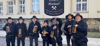 Vereinsmitglieder vom Historischer Bergbau Brand-Erbisdorf e.V. marschieren auch im Sommer zum Bergstadtfest bei der Großen Nachbarin, Glückauf!