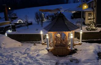 Traditionell werden die Pyramiden in Langenau (unten), Linda und Oberreichenbach angeschoben. Dieses schöne Exemplar dreht sich im Advent bei Familie Kühn.