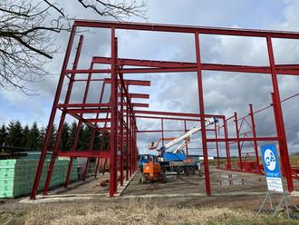 Erweiterung des Gewerbegebietes am Schafweg durch die Firma Werkform GmbH (Bautenstand Ende März 2023).