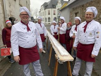 Der Brander Riesenstollen wurde vom Team der Traditionsbäckerei und Konditorei Selbmann präsentiert. Herzlichen Glückwunsch zum 90-jährigen Firmenjubiläum!