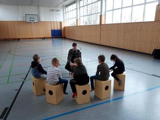 Unsere AG findet freitags im Hort statt und erfreut sich großer Beliebtheit. Jetzt am Anfang trommeln die Kinder zum Lied „We will rock you“ von Queen, bis wir gemeinsam mit unserer Musik-AG ein eigenes Lied erarbeiten.