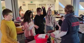 „Wie verhaltet ihr euch richtig, wenn ein Topf mit heißem Öl plötzlich in Flammen steht?“, will Feuerwehrfrau Annett Schink (rechts) im Schulungsraum des Gerätehauses an der Turnerstraße wissen.