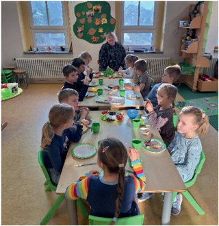 In den Winterferien fand in der Kita „Buratino“ das Projekt gesunde Ernährung statt. Alle Kinder der Einrichtung kamen zusammen, um gemeinsam ein gesundes Frühstück zu genießen. In fröhlicher Atmosphäre wurde an liebevoll gedeckten Tischen gegessen, gelacht und miteinander gesprochen.