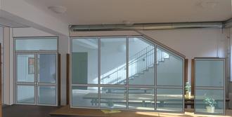 Die notwendigen Metallbauarbeiten samt Verglasung der Innenelemente (Los 6) nach dem gestalterischen Konzept des Brand-Erbisdorfer Planungsbüros Mann & Pitzler sind an ein Leubsdorfer Metallbauunternehmen in Schellenberg für rund 58.000 EUR vergeben. Alle einzubauenden Leichtmetall-/Glas-Elemente müssen ausführungsseitig mit dem Denkmalamt abgestimmt werden, weil unsere Oberschule inzwischen Denkmalstatus besitzt! Die Außentüren (Notausgänge) zum hofseitigen Zugang werden erneuert. Ein optisch großzügig wirkendes zweiflügliges Innentürelement dient der Trennung von Nutzungsfunktionen des neuen Untergeschosses, wohlan!