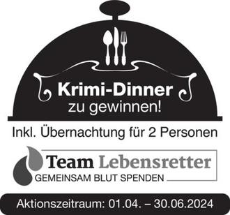 Unter allen Spenderinnen und Spendern verlosen wir monatlich ein Krimi-Dinner inklusive Übernachtung für 2 Personen in Berlin, Hamburg oder Leipzig. Jede Person, die einen Erstspender mitbringt, erhält ein zusätzliches Los.