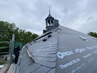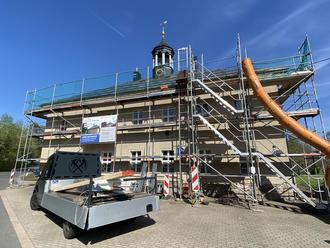 Das Huthaus prägt das Ortsbild von Himmelsfürst. Dort wird ordentlich gewerkelt! Auf Initiative der privaten Eigentümerschaft wird dieses Bergbau-Denkmal mit viel Mut saniert: Spenglerarbeiten, Dachschalung und Eindeckung mit Schiefer, Ertüchtigung der Pfaschen und Ausbau des Erdgeschosses, Turmuhr-Antrieb und neuerliches Glockengeläut wie „Berggeschrey“. All das geht richtig ins Geld. Gut und wichtig, dass dafür Bundesmittel (seitens der Beauftragten für Kultur und Medien) als auch eine Kofinanzierung durch den Freistaat Sachsen, vertreten durch das Landesamt für Denkmalpflege, bereitgestellt werden. Welterbe verpflichtet eben zugleich!