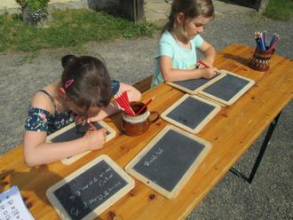 Schon früh am Morgen fuhren die Kinder in Begleitung von Erzieherinnen der Kita mit dem Bus zum Dorfmuseum nach Gahlenz, wo sie hautnah die Lebens- und Arbeitswelt der Menschen im 19. Jahrhundert kennenlernen konnten. So haben sie mit Kreidestiften auf Schiefertafeln geschrieben, Kinderspiele aus damaliger Zeit probiert und sogar die Kuh „Emma“ gemolken. Auch wenn diese nur aus Holz war, waren die Kinder begeistert, dass nach der Anstrengung doch „Milch“ aus dem Euter kam.