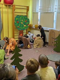 Von der Ideenfindung bis hin zum Gestalten der Requisiten lag alles in den Händen der Kinder, die Unterstützung von Frau Burak, unserer Horterzieherin, erhielten. Paul führte als Erzähler durch das Stück, in welchem Freunde von einer Zauberin in Tiere verwandelt wurden. Nur durch ihre Freundschaft und den Zusammenhalt gelang es den Tieren, wieder in Kinder verwandelt zu werden.