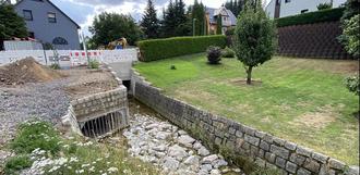 Die laufende Baumaßnahme obliegt der Stadt BED und verläuft aber auch über privaten Grund. Sie ist wingend notwendig um entstandene Schäden an den Bauwerken Nr. 27-30 des Erbisdorfer Wassers zu beheben und bauliche Sicherheit wieder herzustellen. Am Gewässer werden zwei Brückenbauwerke, auch Nr. 33 (Höhe Fahrschule Sandig) erneuert. Der ABOS ist mit rd. 400 T€ beteiligt, erhält jedoch leider dafür kein Fördergeld!