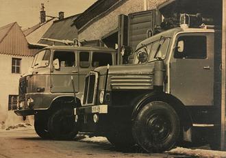 1959 wurde ein Löschfahrzeug S 4000 (vorn im Bild) auf Basis eines (Horch) H3A Löschfahrzeugs LF 15 und im Jahr 1975 ein Tanklöschfahrzeug TLF 16/W50 bei der Brand-Erbisdorfer Wehr in Dienst gestellt (Archiv Feuerwehrhistorik BED).