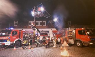 „Dachstuhlbrand im Rathaus durch Kurzschluss“ – „Die erste Leitung kam vom Markthydrant, sodann wird, da der Brand eine größere Dimension annimmt, die Motorspritze eingesetzt, eine Schlauchleiter von der Schiebeleiter. Zwei Druckspritzen decken die Nachbargebäude mit Erfolg. Der Brand wird in kurzer Zeit gelöscht.“ So lauteten am 13. September 1925 der Manöverplan der Feuerwehr sowie der zugehörige Schlussbericht*: nur Übung macht halt den Meister!