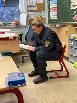 In den zweiten Klassen wurde es aufregend, denn die beiden Vorleser fuhren mit dem Polizeiauto vor: Die Polizeibeamten Sandra Wegewitz und Franco Lindner lasen den Kindern das Buch „Die Tierpolizei“ vor. Anschließend durften alle Zweitklässler das Polizeiauto genau in Augenschein nehmen und den beiden Polizisten Löcher in den Bauch fragen.