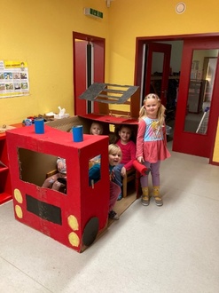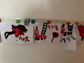 Unsere Jüngsten haben sich dem Thema noch spielerischer angenähert. So gab es bei den Käfern ein Feuerwehrlied und ein Fingerspiel, mit dem die Notrufnummer geübt wurde. Dazu wurden Feuerwehrautos gemalt, Bilderbücher betrachtet, das Bewegungsspiel Feuer - Wasser gespielt und der Weg zum Sammelplatz geübt.