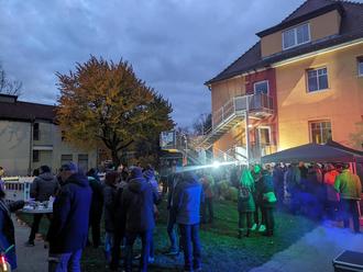 Die Kinder kamen mit ihren Familien zu unserem diesjährigen Laternenfest. Frau Siol, Leiterin der Kita, eröffnete das Fest mit einer kurzen Ansprache.