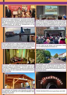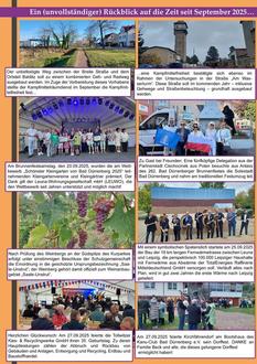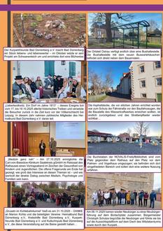 Liebe Bürgerinnen und Bürger, knappe Kassen und die Herausforderung, die städtische Infrastruktur zu erhalten, werden die Bad Dürrenberg weiterhin begleiten. Das Jahr 2025 war geprägt von Problemstellungen, z. B. die Sicherstellung der Altkleidersammlung, die negativen Auswirkungen durch zig Biber und mittlerweile 13 Biberdämme oder die Saline-Passage, die mit den aktuellen Eigentümern weiter nicht vom Fleck kommt. Das Jahr 2025 bedeutete für Bad Dürrenberg das Jahr eins nach der Landesgartenschau. Der Saaleradweg ist seit Anfang des Jahres wieder geöffnet. Die Liquidation der Landesgartenschaugesellschaft läuft nach wie vor; ein positiver Abschluss ist zu erwarten. Die NOVALIS-Freiluftbibliothek und die „Salzkristalle“ haben ihren neuen Standort auf dem Platz vor dem Palmen- und Vogelhaus erhalten. Der Kurpark hat erfreulicherweise nach wie vor enormen Zulauf von Besuchern und Gästen.