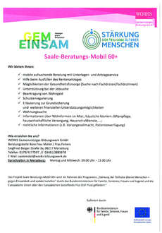 Dies alles ist für die Ratsuchenden kostenfrei, da das Projekt im Rahmen des ESF-Bundesprogramms „Stärkung der Teilhabe Älterer- Wege aus der Einsamkeit und sozialen Isolation im Alter“ durch das Bundesministerium für Familie, Senioren, Frauen und Jugend und dem Europäischen Sozialfonds gefördert wird.