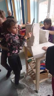 Das Wetter machte uns leider einen Strich durch die Rechnung und wir mussten, auf Grund einer Sturmwarnung, viel Zeit drinnen verbringen. Zum Glück gab es noch eine weitere Überraschung. Aus dem Lager tauchten unverhofft noch einige Gasbetonsteine auf. Mit Raspeln, Feilen und Sägen fielen sie Kinder darüber her und schufen im Handumdrehen ihre ersten plastischen Meisterwerke.