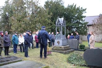 Danach wurde er als Hüttenverwalter in den Gräflichen Einsiedel'schen Eisenhüttenwerken zu Lauchhammer tätig.Der Rundgang führte uns zu dem Grabmal auf dem „ Alten Friedhof“ Bad Dürrenberg, wo er 1835 zu Ehren seiner verstorbenen Eltern ein Denkmal errichten lies.
