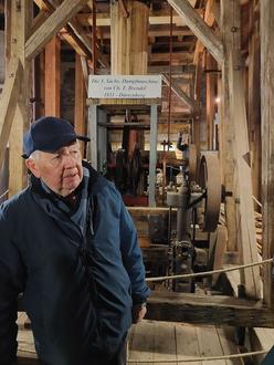 Eberhard Richter vor dem Funktionsmodell der ersten Dampfmaschine Sachsens im Witzlebenturm