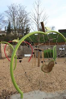 Die Landesgartenschau wird auch vielfältige Angebote für Familien und ihre Kinder bereithalten. Dafür entstand in den letzten Wochen im Bereich der ehemaligen Gutsgärten inmitten der Streuobstwiesen in den Amtsbergmauern unterhalb des Kurparks ein ganz besonderer Spielplatz. In Form von Äpfeln, Erdbeeren und Birnen wurde hier kreativ eine erlebnisreiche Spiellandschaft gestaltet. Der Spielplatz lädt nicht nur zum Toben ein, sondern vermittelt ganz nebenbei spannendes Wissen über die leckeren Früchte.