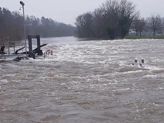 Das Flussbett ist bordvoll, stellenweise kleinere Ausuferungen, noch keine Gefährdung der Anlieger, erhöhte Wachsamkeit.