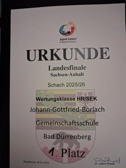 Großer Erfolg für die Borlachschule Bad Dürrenberg: Beim Schulschachlandesfinale von Sachsen-Anhalt sicherte sich das Team souverän den Landesmeistertitel 2026. Das Turnier fand am 8. März, dem Internationalen Frauentag, im Saal der Sodawerke in Staßfurt statt.