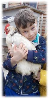 Wir hatten die Möglichkeit, die 5 einzigartigen Hühner bei Familie Seichter anzuschauen. Über die Haltung und Lebensweise konnten wir sehr viel erfahren, sogar füttern und streicheln war erlaubt. Im Nest konnten wir 3 frische Eier entdecken. Witzig war für uns, dass die Hühner auf einer Stange schlafen.