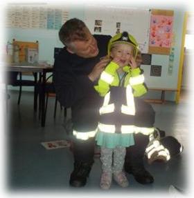 Durch unseren Tischspruch über die Feuerwehr und einige Angebote in der KITA wussten die Kinder schon vieles, vor allem dass sie am Telefon die 112 wählen müssen.