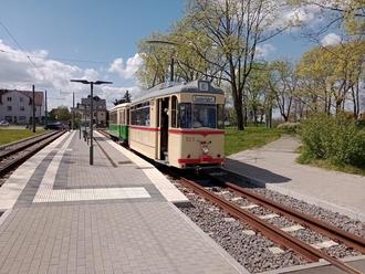 Zum Abschluss eines Treffens von Nahverkehrsfreunden aus Deutschland, Österreich und der Schweiz fand am Sonntag, 23.04.2023, eine Fahrt mit Oldtimer-Straßenbahn nach Bad Dürrenberg statt. Die ersten Fans waren bereits gegen 11:00 Uhr an der Endhaltestelle und warteten auf die Sonderstraßenbahnen.