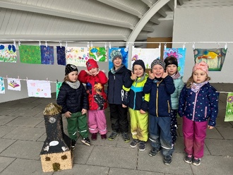 Die Laga GmbH hat uns und andere Kindertagesstätten am 03.04.24 zur Übergabe vieler toller Kunstwerke eingeladen, welche die Kinder für die Laga gemalt bzw. gebastelt hatten. Auch unsere Kita war dabei. Gemeinsam ging es mit einer Mitarbeiterin der Laga GmbH vom Borlachplatz durch den Kurpark zum neuen Musikpavillon. Wir waren die Ersten, die auf dem neuen Musikpavillon stehen durften. Dort angekommen haben alle Kunstwerke auf uns gewartet und wir haben sie uns alle angeschaut. Auch unsere „Kunstwerke“ waren dabei. Alle sahen richtig toll aus, eins war schöner als das andere. Herr Steinland von der Laga GmbH hat uns erzählt, dass 800 Kunstwerke abgegeben wurden. Als Dankeschön durften wir den neuen Wasserspielplatz vor dem Start der Laga schon einmal ausprobieren und es hat uns viel Spaß gemacht. Es war einfach toll!