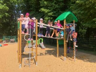 Doch auch die älteren Kinder kommen nicht zu kurz: Ein imposantes Klettergerüst für die Igel und Wackelzähne sowie die Hortkinder bietet jede Menge Herausforderungen und Spaß. Hier können sie ihre Grenzen austesten, Höhen erklimmen und gleichzeitig ihre Koordination schulen.