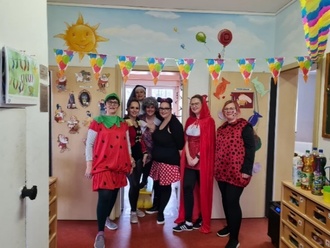 Kurz danach kam unsere jährliche Faschingsfeier. Die einzelnen Gruppen haben in ihren Gruppenräumen und auch gemeinsam im ganzen Haus gefeiert. Alle Kinder kamen in den unterschiedlichsten Kostümen und hatten viel Spaß beim Erraten und erkennen der Verkleidungen.
