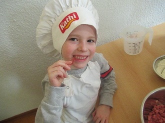 Im Mai haben wir bei dem Projekt „Das zauberhafte Koch- und Backbuch“ mit Eddi Spaghetti teilgenommen. Nach gemeinsamer Rezeptsuche mit den Kindern haben wir uns für das Rezept „bunte Regenbogen - Waffeln“ entschieden. Die Kinder wurden zu kleinen Bäckern und stellten nur mit wenig Unterstützung eigenständig süße, farbige, glitzernde und herzhafte Waffeln her. Das Rezept wurde an Eddi Spaghetti gesandt und wird bald in dem Koch- und Backbuch erscheinen.