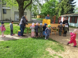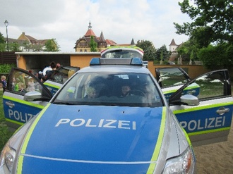 Zwei Polizisten und eine Kriminalpolizistin besuchten uns am 24.05.2023 und hatten ein Glücksrad mit Verkehrsschildern zum Erraten und eine Bastel- und Malstrecke mit. Dieses Jahr konnten die Kinder sich sogar darin erproben, wie man Spuren von Tätern sichern kann und wie man Fingerabdrücke nimmt. Das Polizeiauto war wieder das große Highlight für die Kinder.