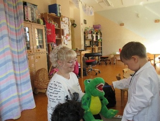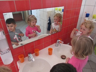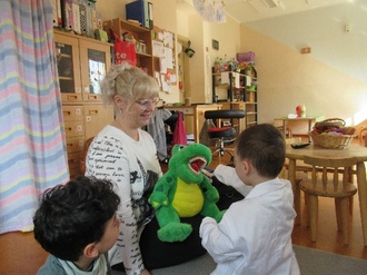Zuerst durfte jeder in die Rolle eines Zahnarztes schlüpfen, dann zeigte er uns, wie wir unsere Zähne richtig putzen und danach konnten wir Kroko zeigen, was wir gelernt haben.