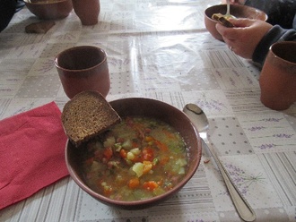 Am 11.05.2023 war es endlich soweit, die große Abschlussfahrt stand an. Den Tag starteten wir mit einem tollen Frühstücksbuffet und gestärkt ging es dann mit dem Reisebus auf große Fahrt Richtung Querfurt. In der „Alten Burgschäferei“ wurden wir von den Mitarbeiterinnen in Empfang genommen. Hier wurde uns gezeigt wie Menschen ab 1930 lebten, was sie für Kleidung trugen, welche Aufgaben sie auf dem Hof hatten und wie sie sich versorgten. Als wir alles erkundet hatten, haben wir unser Mittagessen gemeinsam zubereitet. Es gab eine leckere Gemüsesuppe, wofür wir Gemüse geschnitten und Petersilie gehackt haben. Hierbei haben alle Kinder fleißig mitgeholfen. Während die Suppe kochte, besuchten wir die Tiere auf dem Hof, konnten diese streicheln und die Kinder konnten sich im Melken ausprobieren.