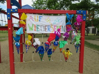 Am 02.06.2023 feierten wir unser Zuckertütenfest. Die Eltern haben vorher unseren Garten festlich geschmückt. Um 15 Uhr haben die Kinder mit einem kleinen Programm die Feier eröffnet. Anschließend ging es zur Übergabe der Zuckertüten. Diese haben die Eltern in einem Bastelnachmittag für Ihre Kinder liebevoll gebastelt und gestaltet. Nach der Zuckertütenübergabe ging die Party dann richtig los, mit Musik und bunten Luftballons konnten alle einen schönen Nachmittag bei strahlendem Sonnenschein genießen.