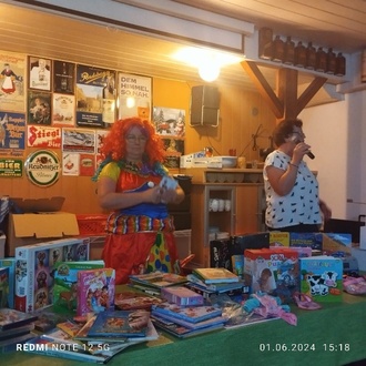 Im Juni ging es dann los mit dem Kindertag in der Gartenanlage Mitte mit Tanz, basteln, malen, Kinderflohmarkt und Kuchenbasar. Auch im nächsten Jahr wird es eine Wiederholung des Kindertages geben. Hoffentlich ohne so viel Wasser von oben wie in diesem Jahr, trotz alledem war die Stimmung gut, auch wenn die Männer im Rettungseinsatz waren. Mit dem Sommerkarneval in Lützen ging es weiter, wo unser neues Männerballett und unsere großen Mädels einen Auftritt hatten. Zur Unterstützung kam unser Hanno mit einer Bütt dazu.