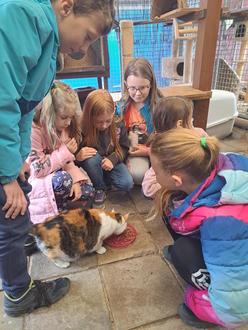 Dort wurden wir ganz herzlich mit Nascherei und leckeren Getränken empfangen. Natürlich durften wir erstmal alle kleinen und großen Fellnasen besuchen und mit ein paar Streicheleinheiten verwöhnen. Anschließend konnten wir dem Team des SOS Tierhof eine Spendensumme von 180 € überreichen. Darauf dürft ihr, liebe Kinder, stolz sein!