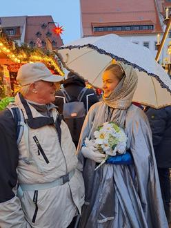 Die Wanderfreunde Ulrich Lott, Achim Scholz und Wolfgang Schmieder erläuterten uns mit viel interessanten Details die Region und die Bergbaugeschichte auf einer Strecke von über 20 km, ehe wir unser Ziel - den erzgebirgischen Weihnachtsmarkt in Freiberg erreichten. Hier war uns das Glück hold, dass einige Wanderfreunde von der amtierenden "Silberstadt-Königin" Sohpia begrüß wurden und einige Worte mit ihr wechseln konnten. Sie zeigte sich erfreut, dass die Wandergruppe auch aus einer Bergbau-Region anreiste, um im Umfeld zu wandern.