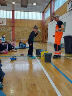 „Gemeinsam Abfälle vermeiden und die Umwelt schonen“, das war das Thema unseres Projektes in der Grundschule Bad Lausick am 29. März. Ein Projekt des Landkreises Leipzig, bei dem es rund um den Müll ging. Die Klassen 1 und 2 sahen einen Film, in dem noch einmal gezeigt wurde, wie man Müll richtig trennt und wie der Müll recycelt wird. Und dann war Herr „Stinknich“ von der Firma KELL, der uns durch den Film begleitet hat, auch noch persönlich da und führte ein Theaterstück auf, bei dem wir selbst Müll in die entsprechenden Abfallbehälter sortieren mussten. Das war nicht immer einfach. Da war Herr Stinknichs stinkende Socke, kaputter Schuh und auch sein kaputtes Handy sollte in die richtigen Behälter oder musste zum Wertstoffhof gebracht werden.