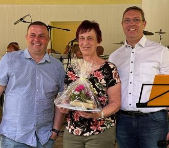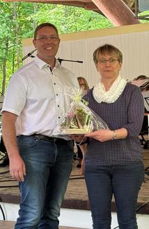 Frau Ute Landsmann wurde für ihre langjährige Arbeit im Ballendorfer Carnevalsclub und ihr Engagement für den Ortsteil Ballendorf von Bürgermeister Michael Hultsch und Ortsvorsteher Christoph Lange ausgezeichnet.