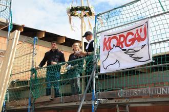 Der Richtkranz wurde aufgezogen und kündet vom erfolgreichen Baufortschritt